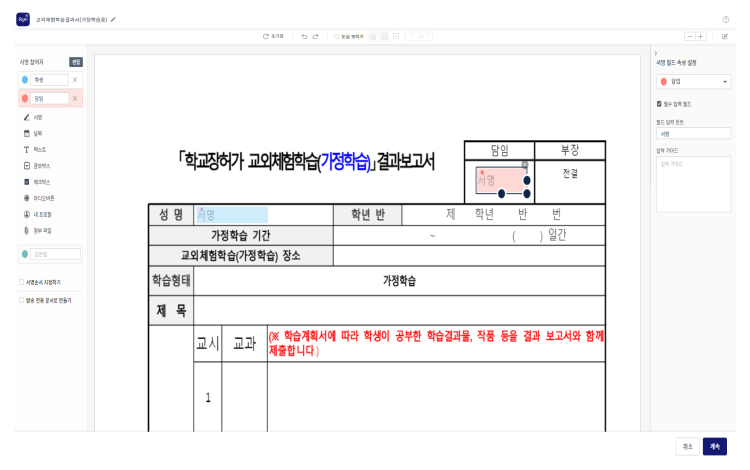필드를 올리기만 하면 됩니다. 서명 외에도 날짜, 체크박스 등