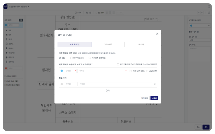 편리한 방식으로 서명자에게 전달하세요.