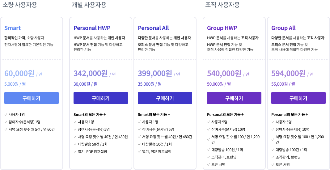 한컴싸인의 다양한 요금플랜!